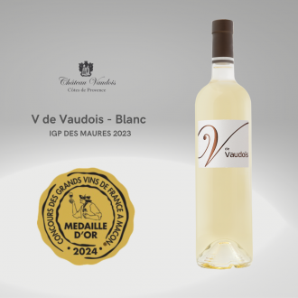 Château Vaudois est fier de vous annoncer l'obtention d'une médaille d'or au concours des grands vins de France pour la cuvée V de Vaudois - IGP des Maures - Blanc 2023